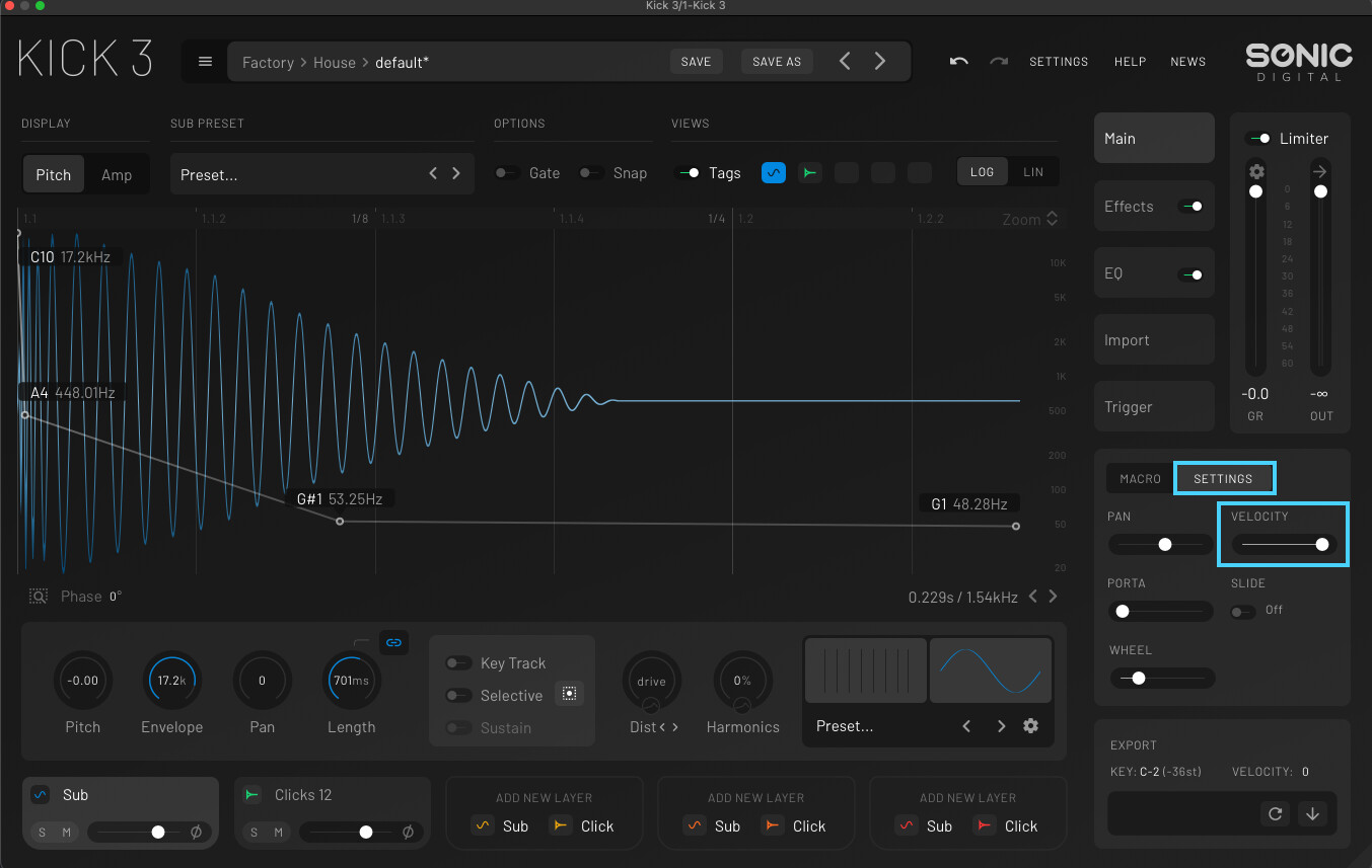 I’m sending MIDI notes, including velocity information, from my hardware step sequencer to the KICK 3 plugin.